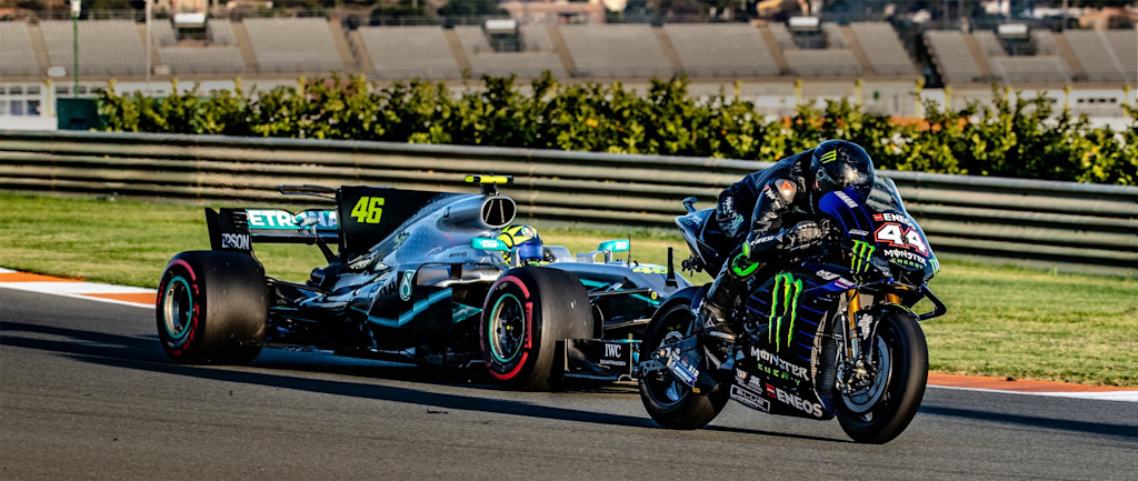 Valencia played host to a historic motorsport moment when six-time F1 World Champion Lewis Hamilton and nine-time MotoGP World Champion Valentino Rossi took part in a track day with a difference.