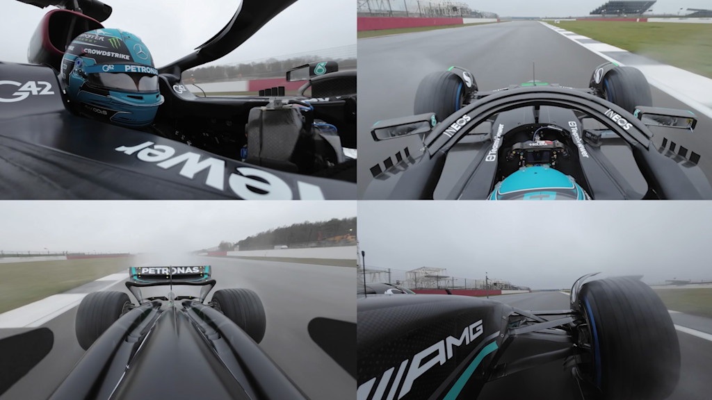 Watch all the onboard angles as George takes on Silverstone in the all-new W14.